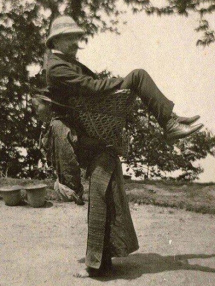 صورة لامراة في الهند تحمل سيدها البريطاني عام 1903