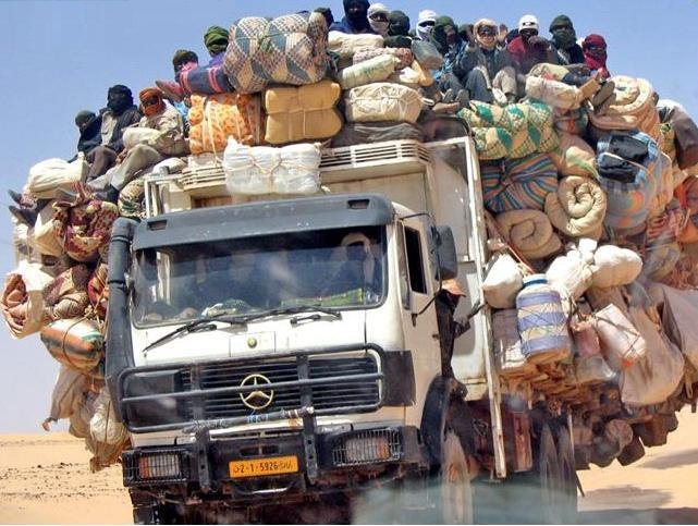 اغرب حمولة لشاحنة في احدى الطرق الصحراوية في القارة السمراء