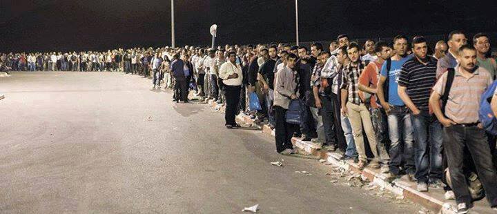 صورة تعبر عن مدى معاناة الفلسطينين اثناء ذهابهم وعودتهم من والى اعمالهم ووظائفهم - الصورة من حاجز ترقوميا في الخليل