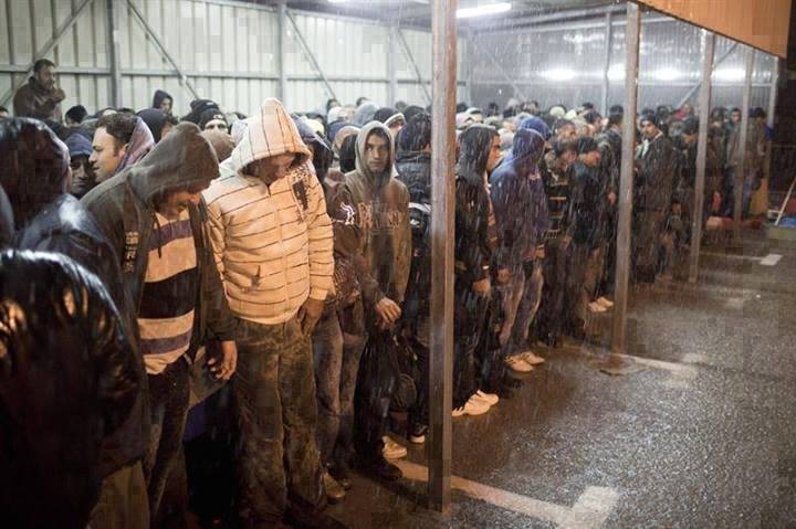 صورة لعمال فلسطينيين على احد معابر الاحتلال رغم المنخفض القطبي الذي حصل فيه الجميع على اجازة باجر كامل ما عدى هؤلاء ؟؟؟ ان عملوا اكلوا واطعموا اولادهم وان استراحوا باتو ليلتهم جوعى