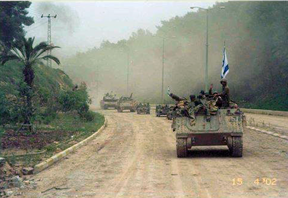 صورة من مدخل جنين الجنوبي اثناء قيام دبابات الاحتلال باجتياح مدينة جنين من عدة مداخل ,, وبظهر في الصورة دخول رتل من الدبابات من المدخل الجنوبي