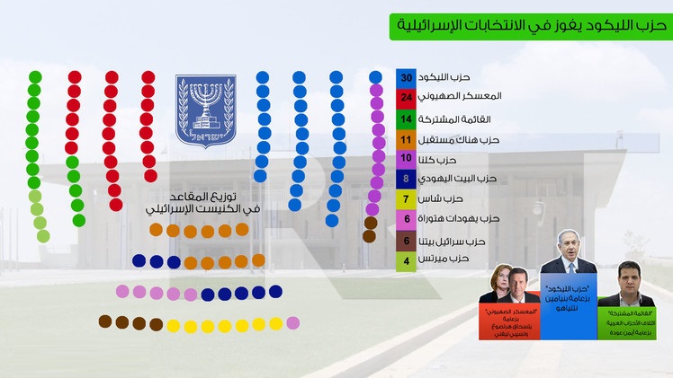 النتائج الرسمية : الليكود 30 مقعدا والمعسكر الصهيوني 24 والعربيه 13