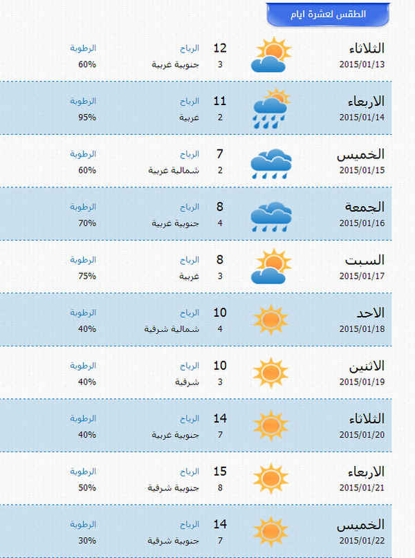 نشر موقع طقس الوطن موجزا للحالة الجوية لفسطين خلال العشرة ايام القادمة