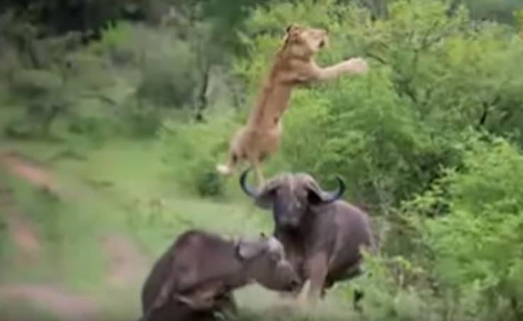 اظهر مقطع فيديو انتشر عبر موقع يوتيوب بواسطة حساب "BARCROFT tv" أسد يتحول الى فريسة سهلة.