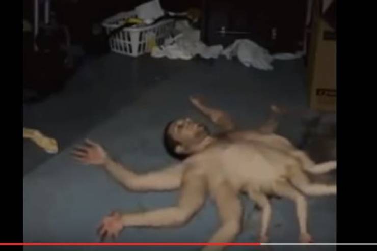 اظهر مقطع فيديو انتشر عبر موقع يوتيوب لشخص يحتوي جسمه على تسعة أرجل، حيث
