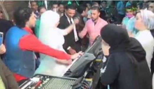 أشعلت عروس حفل زفافها، بعد أن تركت الكوشة، وتوجهت نحو منصة "الدي جي"؛ لتقوم