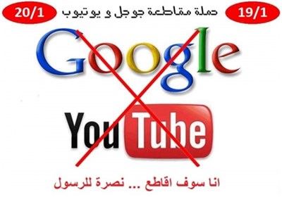 أكد نشطاء عبر مواقع التواصل الاجتماعي أن يوم الاثنين والثلاثاء 19/20 يناير عن بدأ حملة لمقاطعة جوجل ويوتيوب لإيصال رسالة