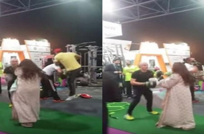فيديو : على غير العادة شابة غير محجبه تتدرب مع الرجال في السعوديه