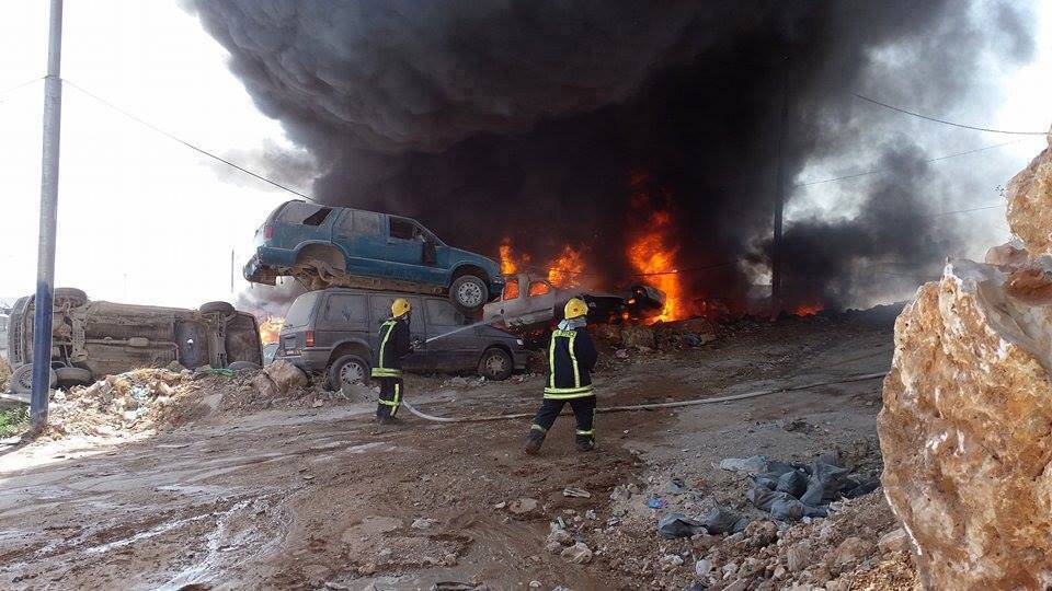النيران تلتهم نحو 200 سياره في احد كراجات الرام