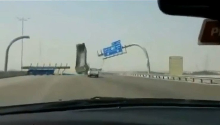 أظهر فيديو لقطات مروعة لسائق شاحنة يحطم لوحة علامات المرور المعلقة في الطريق السريع