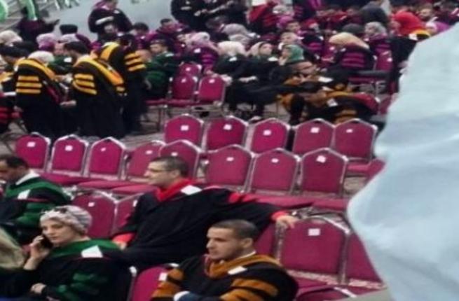تداول عدد من النشطاء على موقع التواصل الاجتماعي الفيسبوك مشهد من حفل تخرج طلاب
