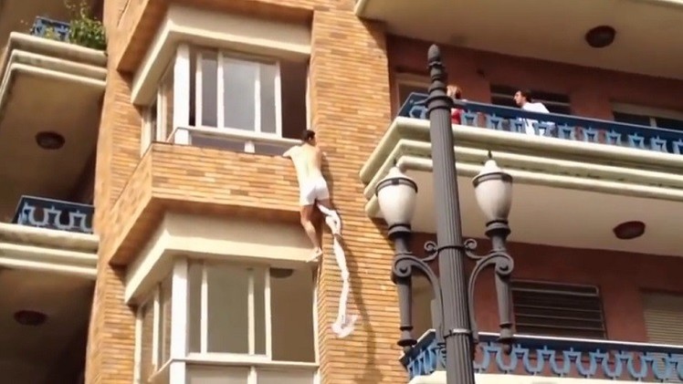 فيديو مغامر روسي يشعل النار بنفسه ويقفز من الطابق التاسع