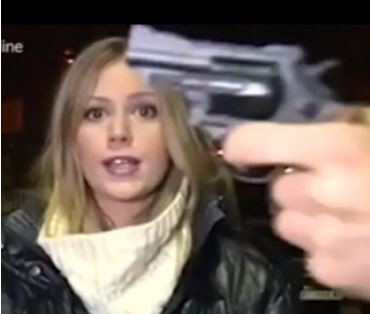 فيديو | رجل يرفع سلاحه في وجه مذيعة على الهواء !