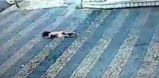 فيديو| لقطات مروعة لطفلة تسقط من الطابق الثاني بمبنى سكني !