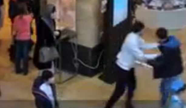 في احد المراكز التجارية في روسيا يقوم احد الشباب بالتحرش بفتاة غير مسلمة ولا محجبة,مع العلم بان هذا تمثيل والهدف