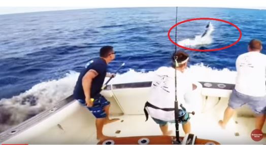 كاد الموت يخطف صيادا بعد أن قفزت سمكة “أبو سيف” من البحر، اصطادها صاحبه،