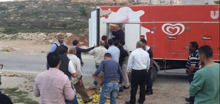 نشطاء يتلفون شاحنة ‘مرطبات’ إسرائيلية برام الله