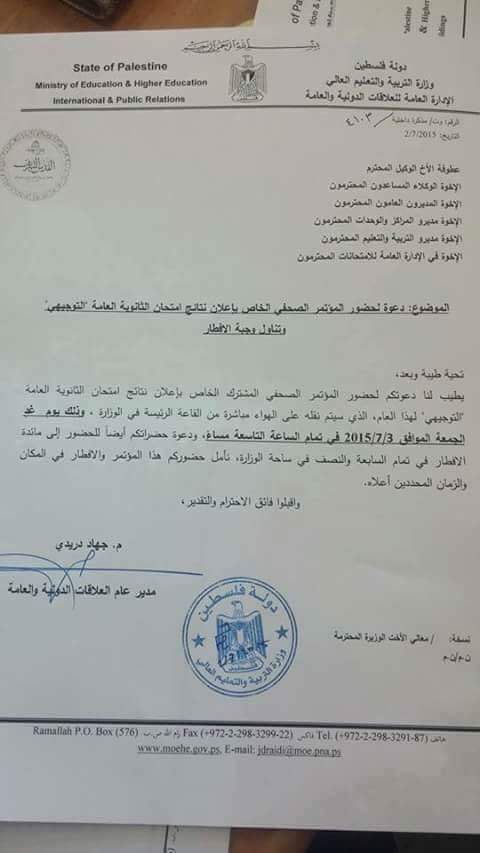 قوائم نتائج الثانوية العامة- فلسطين 2016