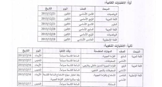 اعلنت وزارة التربية والتعليم عن برنامج الاتبارات الموحدة للصفوف الدراسية والذي سيتم عقده على