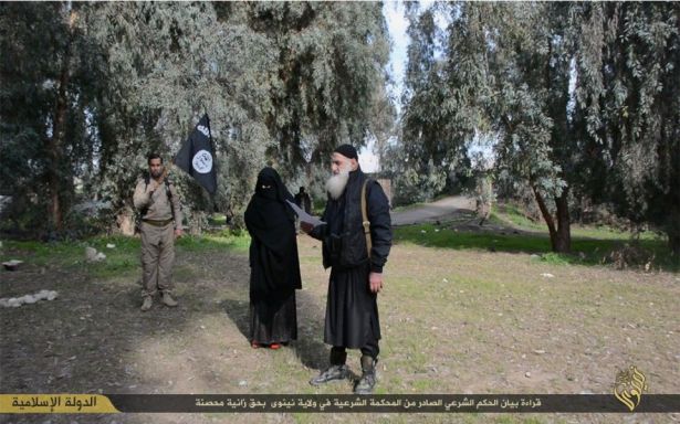 العملية جرت في مدينة نينوى العراقية كما زعم التنظيم، وقد وزع صوراً عبر مواقع مقربة منه على الانترنت تظهر سيدة منقبة اقتيدت الى مكان أشبه ببستان، في احدى الصور نشاهد رجلاً يرشقها بحجرة كبيرة، وفي أخرى رجلاً يتلو الحكم، وفي الصورة الاخيرة تبدو السيدة وقد أسلمت الروح وحولها عدد كبير من الاحجار التي رشقت بها من دون رحمة.