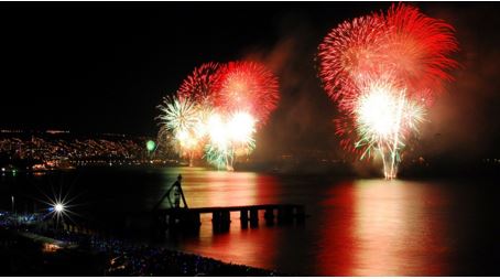 1. فالباريزو (Valparaiso) ، تشيلي: تقع مدينة فالباريزو على التلال المشرفة على المحيط الهادئ وهي تستضيف أكبر حفلات رأس السنة في القارّة، إذ تستمرّ الاحتفالات لثلاثة أيّام متواصلة بحضور الملايين من الزوّار الذين يتوافدون إليها لمشاهدة العرض الخاص للألعاب النارية الشهير والأكبر في أميركا اللاتينية. من أجل جلب الحظ الجيّد للسنة المقبلة، يرتدي السكان المحليون ملابس داخلية صفراء اللون ويتناولون العنب عند منتصف الليل. تعتبر عروض الألعاب النارية في فالباريزو من أكبر العروض وأهمّها، كما تشهد هذه المدن أيضاً أكبر الحفلات التي تضمّ عدداً هائلاً من الزوار، حيث يتعانقون ويتبادلون القبل، ويذرفون الدموع على من هم بعيدين منهم. إضافة إلى وجود الفرق الموسيقية التي تملأ الشوارع مع الـ confetti والشمبانيا.