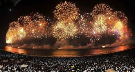 2. ريو دي جانيرو (Rio de Janeiro)، البرازيل: تعرف المدينة البرازيلية باحتفالاتها التي تحييها في الشوارع ليلة رأس السنة بدءاً من السابعة مساء. يستضيف شاطئ كوباكابانا أكبر حفل لليلة رأس السنة في العالم، ويطلق عليه اسم " Réveillon"، يمزج بين المعتقدات الدينية والتقليدية، والخرافية: يرتدي السكان المحليون الأبيض لأنه يجلب الحظّ، ويتوجهون إلى المحيط مع باقة من الورود ينثرونها فيه من أجل تقديمها لآلهة البحار Yemanjá، فضلاً عن عرض الألعاب النارية المعروف في جميع أنحاء العالم. كما تحصل حفلات أخرى ولكن أصغر على شواطئ Ipanema، Barra وFlamengo. ولا تنسَ من اصطحاب زجاجة شمبانيا معك إلى الشوارع للاحتفال، لأنّ هذه العادة تجلب الحظ.