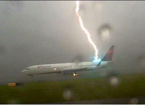 التقطت الصورة في أغسطس الماضي، حين صعق البرق طائرة بوينغ 737 تابعة لشركة طيران دلتا الأميركية، وهي على وشك الهبوط في مطار اطلنطا، ولم يصب أحد بأذى، لكن الصورة تبدو وكأنها من أفلام الخيال العلمي.