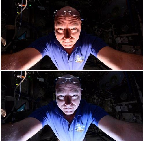 التقط رائد الفضاء سكوت كيلي صورة “سيلفي” أضاءتها انعكاس الأنوار الصادرة من الأرض، وبالتحديد من حوض البحر الأبيض المتوسط، حسب تعليقه.