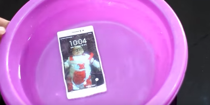 2- بعد تغليف الهاتف جيدا، قم بوضعه في الماء، وتجد بنفسك أنه لن يتعرض للإتلاف.