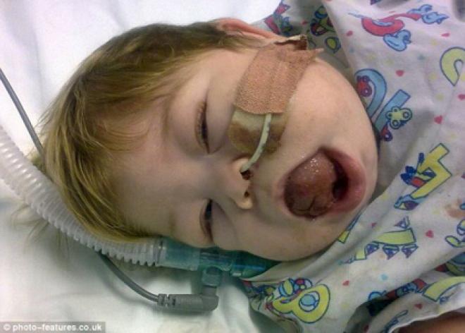 تعاني طفلة بريطانية من حالة مرضية نادرة تتمثل في عدم توقف لسانها عن النمو، بحيث ينمو بوتيرة أسرع من بقية أجزاء جسدها ما يهدد دوما بتعرضها للاختناق، وهذه الحالة المرضية تصيب مولودا واحدا بين كل 15 ألف مولود، حيث يستمر فيها اللسان في التضخم المستمر، دون أن يتوقف عند الحجم الطبيعي له، وذلك لعيب في النظام الجيني.