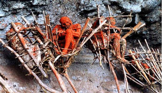 للوهلة الأولى تبدو هذه الجثث كأجسام حمراء مشوهة تتدلى على الجبال في منظر مقرف وبشع، ولكن أهالي قبيلة أنغا، يعتبرون ذلك أسمى آيات الاحترام للموتى