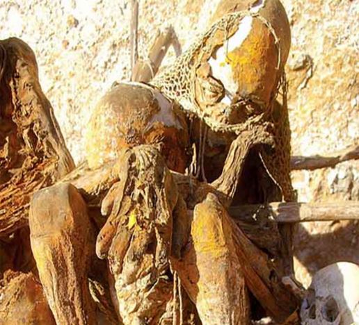 يتم معالجة الجثث عن طريق تدخينها لتتحول إلى مومياء ومن ثم وضعها على المنحدرات الحادة، بحيث تطل على القرية.