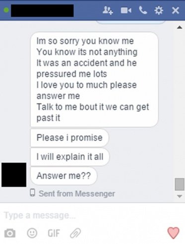 ومن بعدها أرسلت الحبيبة للشاب المحطم رسالة اعتذار، مؤكدة أن ما حصل ليس إلاّ حادثة بعد ضغط والده عليها، وطالبته مراراً بالردّ على رسائلها إلاّ أن الشاب رفض ذلك.